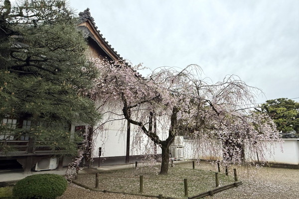 While the Somei Yoshino cherry blossoms have begun to scatter, the late-blooming Beni-shidare (weeping cherry) trees are now at their peak. We invite you to enjoy their beauty through this coming weekend.