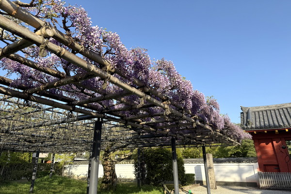 なお、表門のノダフジ・だるま藤、南門のノダフジ、境内のノダフジの一部は、4月30日(木)・5月1日(金)に剪定作業を行う予定です。